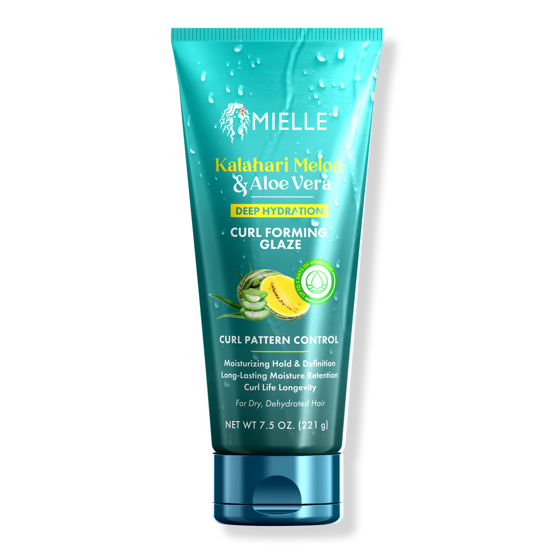 Mielle's Kalahari Melon & Aloe Vera Deep Hydration Curl Forming Glaze is a flowy, creme-gel that defines curls, adds shine and provides a moisturizing hold. This curl pattern enhancer increases curl life, and delivers juicy, hydrated, curl popping bliss.