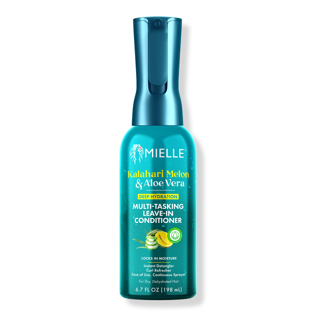 Mielle's Kalahari Melon & Aloe Vera Deep Hydration Multi-Tasking Leave-In Conditioner multi tasks as a leave-in conditioner, instant detangler, and curl refresher. This continuous spray leave-in conditioner locks in moisture for nicely hydrated tresses that are ready to style.