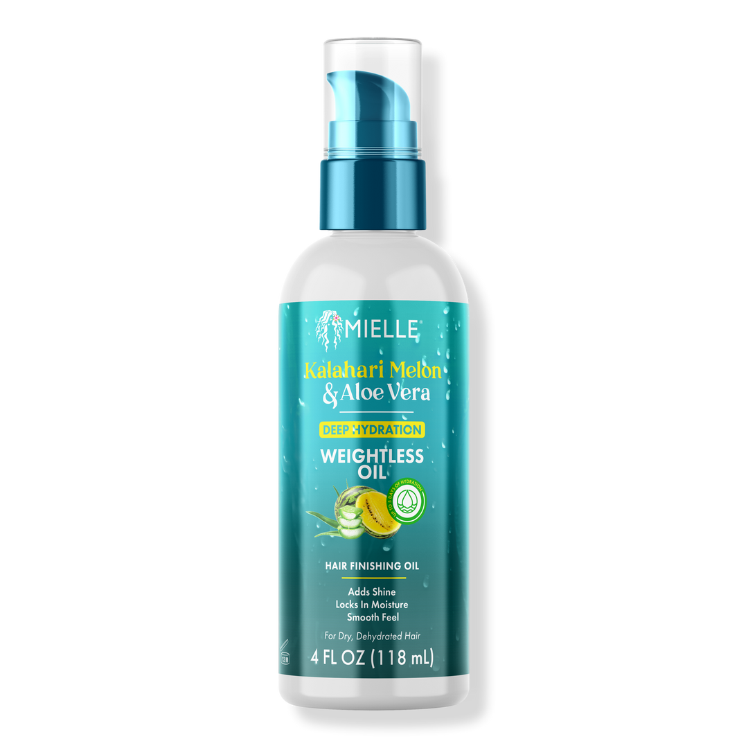 Mielle's Kalahari Melon & Aloe Vera Deep Hydration Weightless Oil is a styling finisher that delivers shine without weighing hair down. A lightweight oil blend, created to seal in moisture for days.