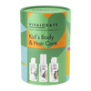 VIVAIODAYS Kids Body & Hair Care Gift Set features fragrance-free Saponaria Wash & No-Tears Shampoo, Tsubaki Leave-In Conditioning Detangler, and Castor Oil Nourishing Conditioner. Packed in an FSC-certified reusable box—each purchase supports SchoolDays for Children worldwide.