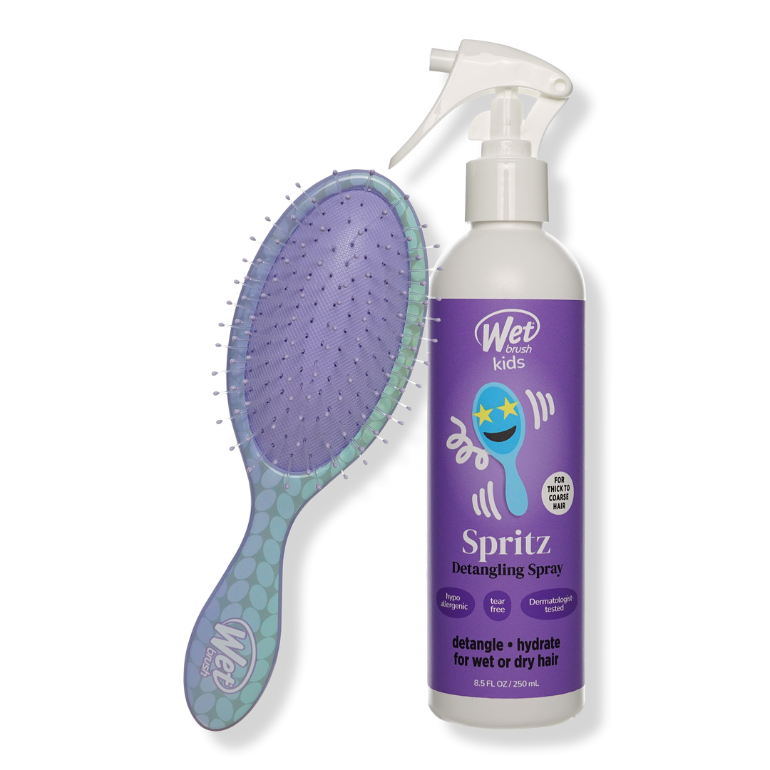 Meet the Happy Hair Kit brought to you by the creators of the Wet Brush Original Detangler®! The Spritz Detangling Spray for kids is like magic, instantly removing knots and tangles. Plus, a kid sized Original Detangler® glides through tangles with over 45% less breakage for 100% happier hair.