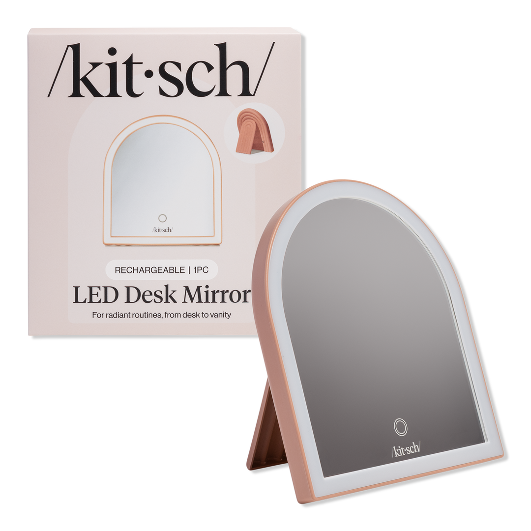Kitsch LED Desk Mirror in Terracotta features adjustable LED lighting with warm, neutral, and cool tones for flawless makeup or skincare. Touch controls let you dim or change settings, while its sleek, compact design makes it perfect for desks, vanities, or on-the-go self-care.