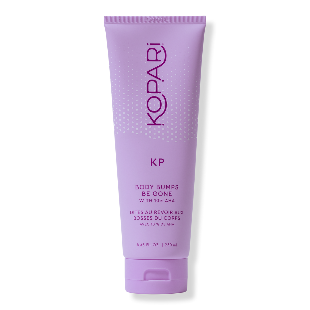 Kopari Beauty's KP Body Bumps Be Gone with 10% AHA is a gentle-yet-effective vegan body scrub treatment to reduce the appearance of dry, rough patches and tiny bumps, known as keratosis pilaris (KP).