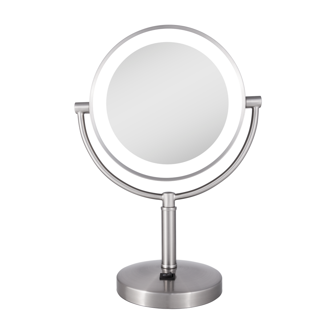 Featuring a generous 7-inch dia. reflective glass face mirrors. Ultra-bright LED ring light. Mirror offers 10-times and 1-time magnifications. Enjoy 360-degree swiveling bathroom mirror head. Convenient ON/OFF switch.