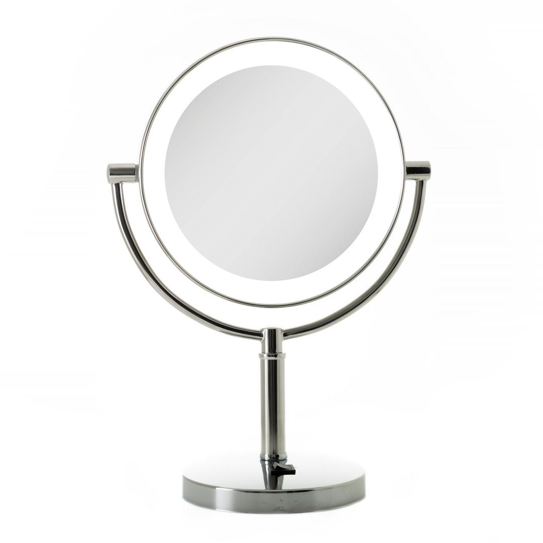Featuring a generous 7-inch dia. reflective glass face mirrors. Ultra-bright LED ring light. Mirror offers 5-times and 1-time magnifications. Enjoy 360-degree swiveling bathroom mirror head. Convenient ON/OFF switch.