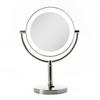 Featuring a generous 7-inch dia. reflective glass face mirrors. Ultra-bright LED ring light. Mirror offers 5-times and 1-time magnifications. Enjoy 360-degree swiveling bathroom mirror head. Convenient ON/OFF switch.