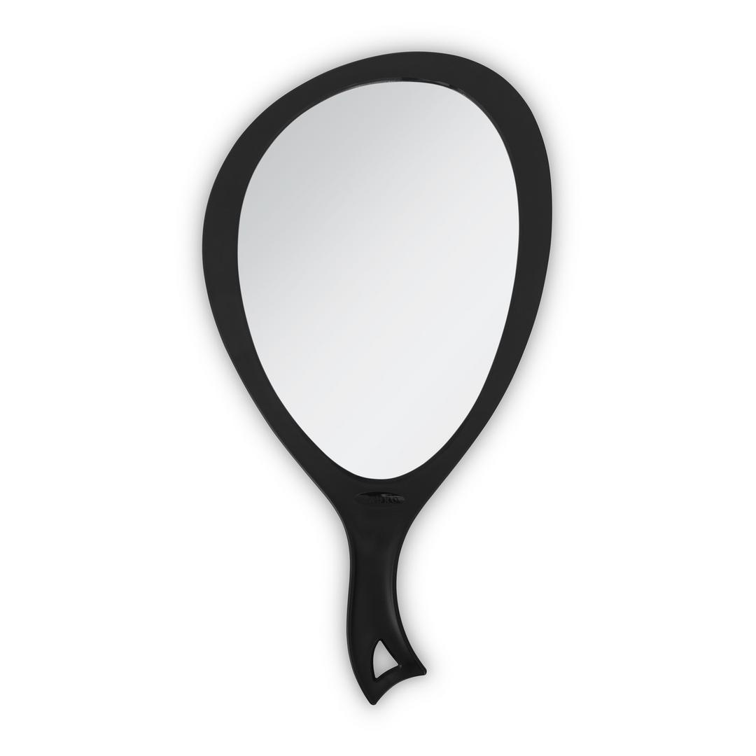 19-inch by 10 inch. True-to-image optical glass and a perfectly sized reflective surface. Providing a clear and accurate view that's for detailed grooming and makeup application. Engineered with advanced molding technology, this hand mirror ensures the glass is securely set and secure.