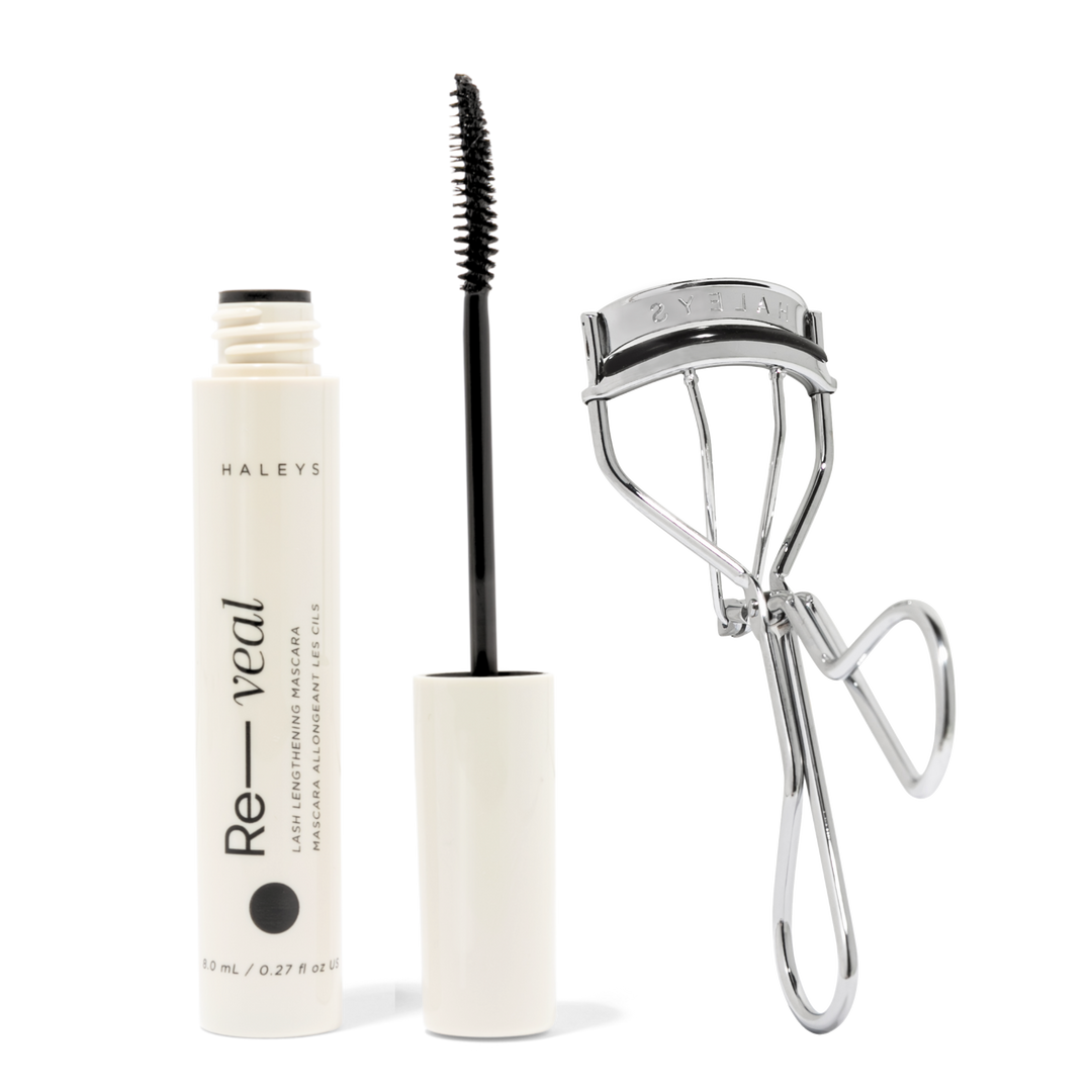 HALEYS Lash Lift Curler + Curl-Holding Lengthening Mascara Duo is a lash-lifting power pair designed for straight and short lashes. The precision curler lifts and shapes, while the lightweight lengthening mascara locks in curl that lasts all day without drooping, smudging, or clumping.