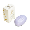 A Triple-Milled Plant Based Soap for Bath & Shower, Oval with Logo.Hand-selected premium harvest lavender, rare white cedarwood, and sheer musk for a dynamic, sublimely beautiful blend with a hint of bergamot.