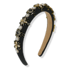 - Black, pearl, and gold embellishments shimmer in a floral-inspired design that elevates any hairstyle