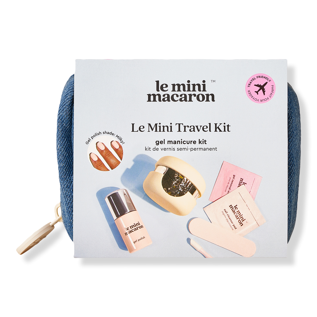 Le Mini Macaron's best-selling gel manicure kit is now in a travel-friendly version! This Le Mini Travel Gel Manicure Kit all-in-one kit includes a LED lamp, 1-step gel polish in Milky a creamy hint of peach plus accessories & tools to DIY a convenient gel manicure. All packed in a cute denim pouch!