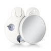 LED lighted portable makeup mirror. 10-times magnification glass face mirror. Suction cups mount to most smooth services like glass and tile.