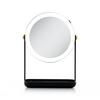 5-times and 1-time magnification makeup mirror. 360-degree swiveling mirror head. 5.75-inch dia. glass face mirrors. Accessory tray with built in phone stand. Cool white ring lighting. Stylish gold joint accents. Easy-touch On/Off button. 5 AAA batteries required.