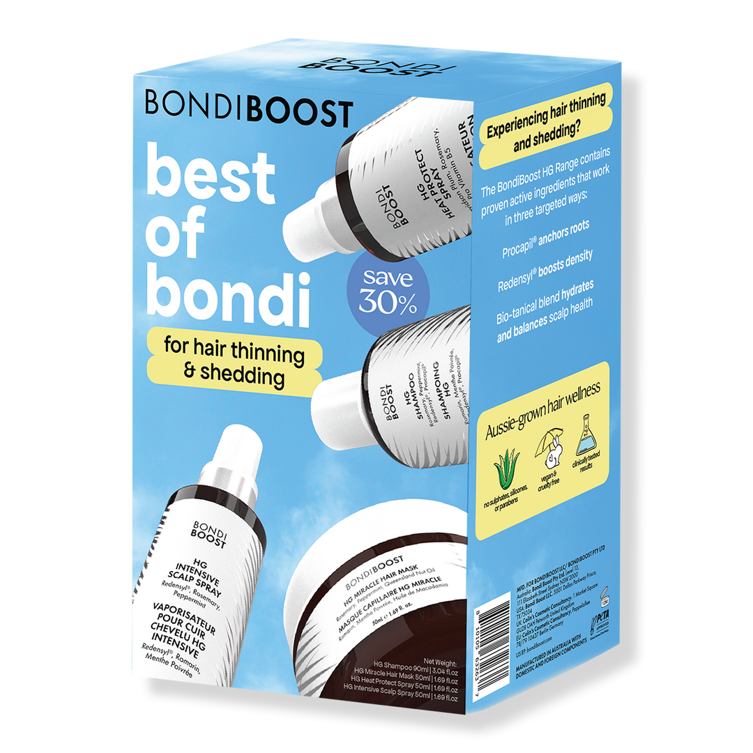 - It’s jam-packed with BondiBoost's HG Signature blend of scalp and hair-loving ingredients: Rosemary, Saw Palmetto and Nettle Leaf to stimulate, nourish and soothe the scalp, prevent breakage and boost hair elasticity.