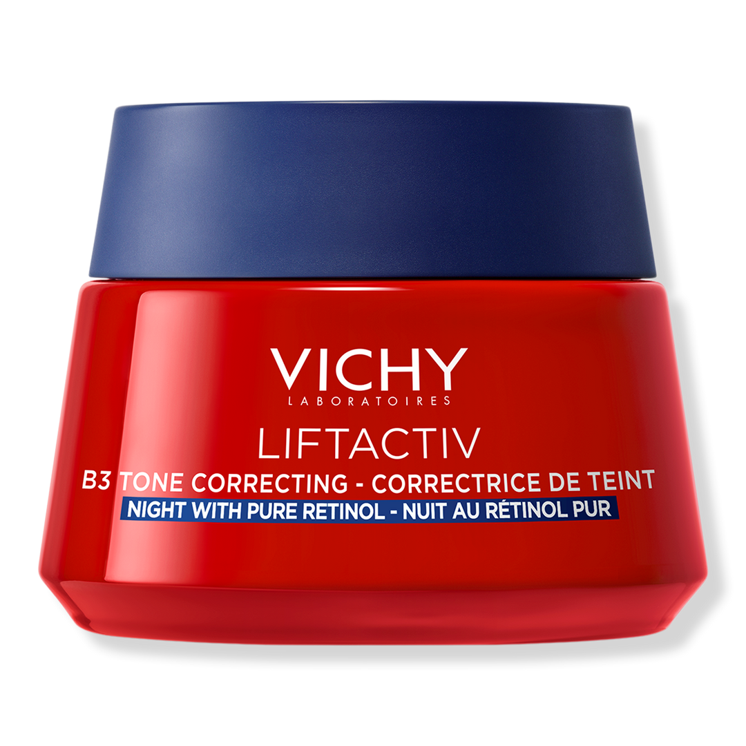 Vichy's B3 Tone Correcting Cream, Night with Pure Retinol, has two powerful derm ingredients in a comforting night cream. Powered by 4% niacinamide (Vitamin B3) and 0.15% Pure Retinol, the skin feels renewed, and the skin tone looks more even. Skin looks more radiant and tone is more even.