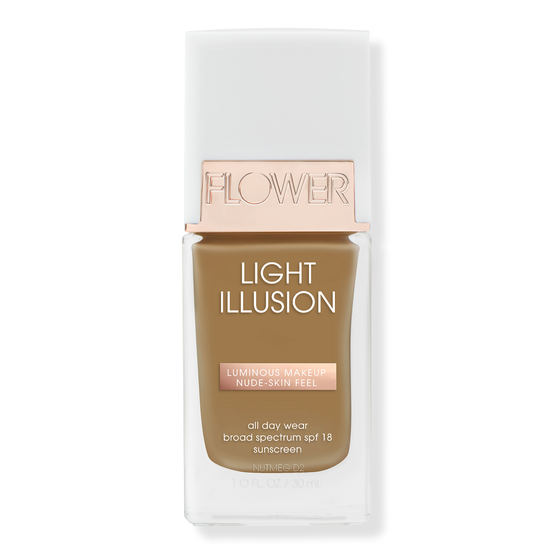 FLOWER Beauty's Light Illusion Liquid Foundation visibly diminishes discoloration and balances uneven skin tone for natural-looking coverage.