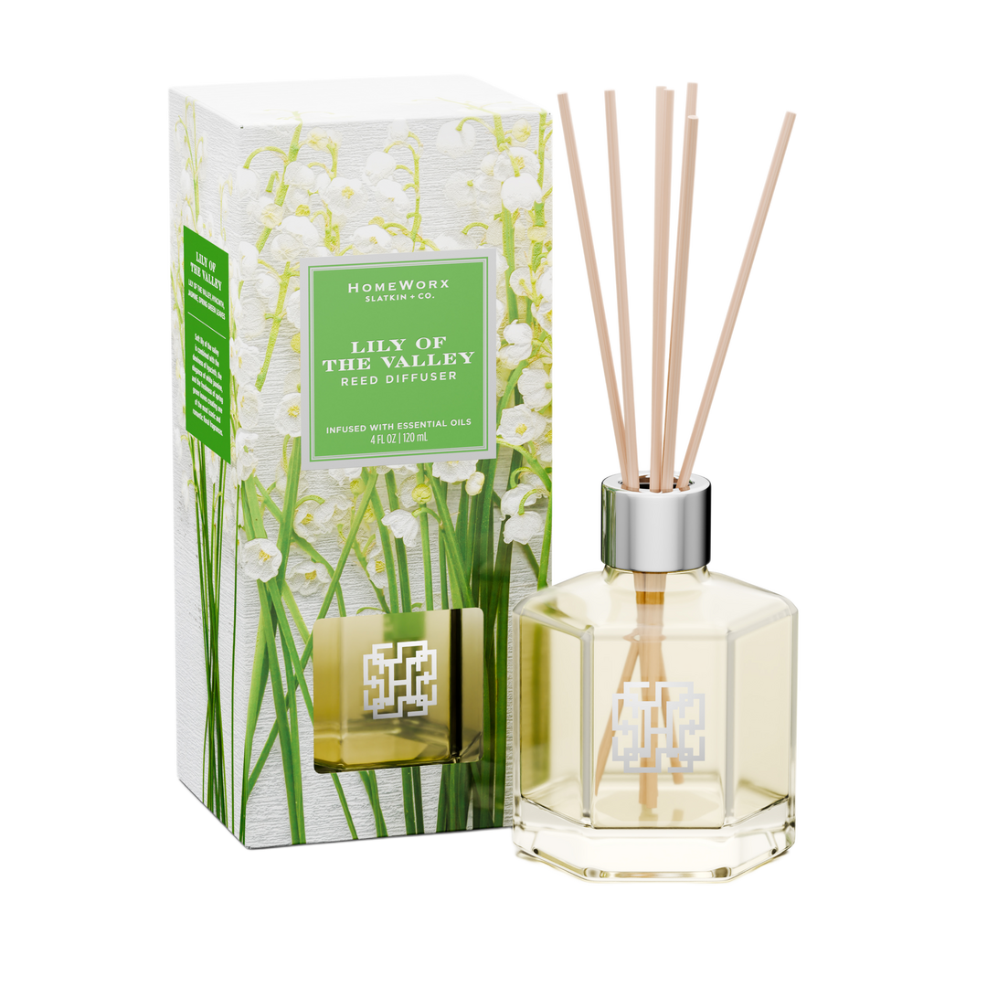 - Looking to add a subtle, long-lasting fragrance to your home? HomeWorx reed diffusers are the perfect choice for elevating any room with inviting scents that last for weeks. Crafted with premium, essential oil-infused fragrances, each diffuser is designed to release a continuous scent, providing a hassle-free alternative to candles. Fragrance Notes: Lily of the Valley, Hyacinth, Jasmine, Spring Green Leaves
