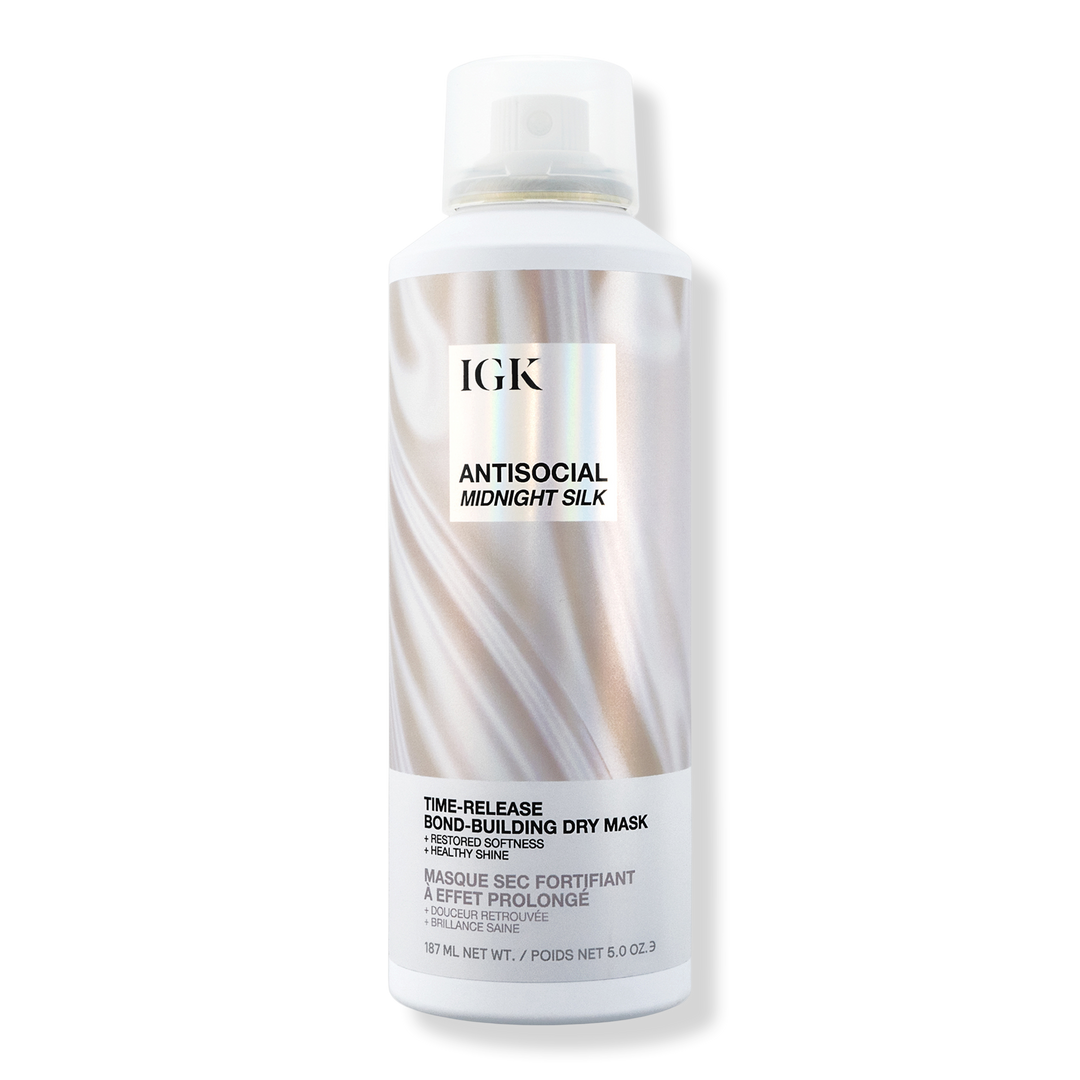 IGK’s best-selling Antisocial Bond-Building mask now with a limited-edition look inspired by the silky soft hair of your dreams. This no-rinse treatment features Vegan Silk to repair and protect while delivering lightweight hydration, softness, and shine.