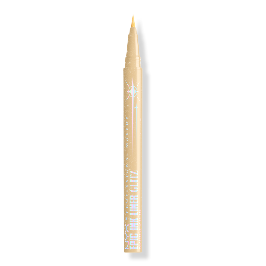 Rule the room with NYX Professional Makeup Bridgerton Royal Epic Ink Liner Glitz! Ultra-precise brush tip delivers sharp lines and bold sparkle.