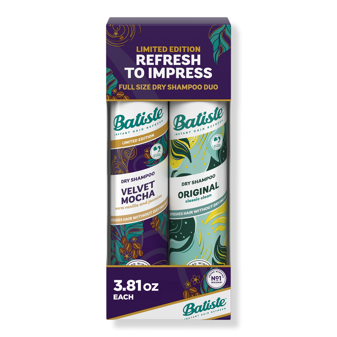 - Holiday Duo set includes two full-size, 3.81 oz. cans of Batiste Dry Shampoo spray, Original and Velvet Mocha, only available for a limited time