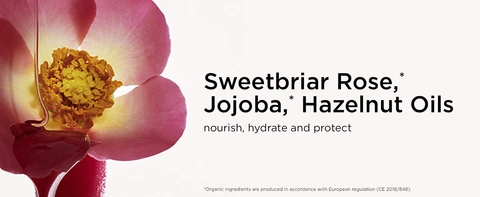 • Organic Sweetbriar Rose* Oil: hydrates + visibly plumps lips
