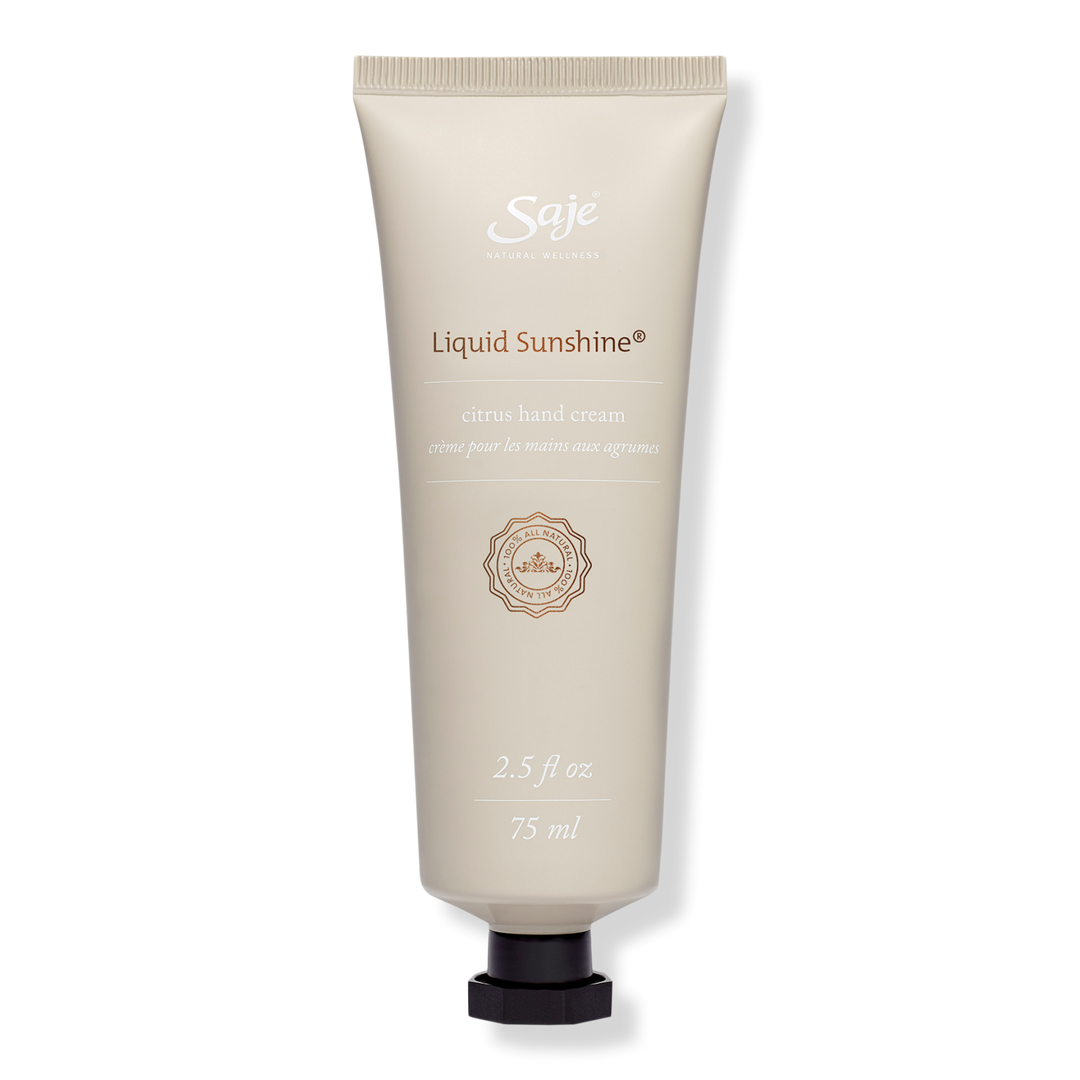 Saje Natural Wellness's Liquid Sunshine Citrus Hand Cream combines the happy-making power of citrus essential oils with Argan and Shea to soften, nourish and protect skin.