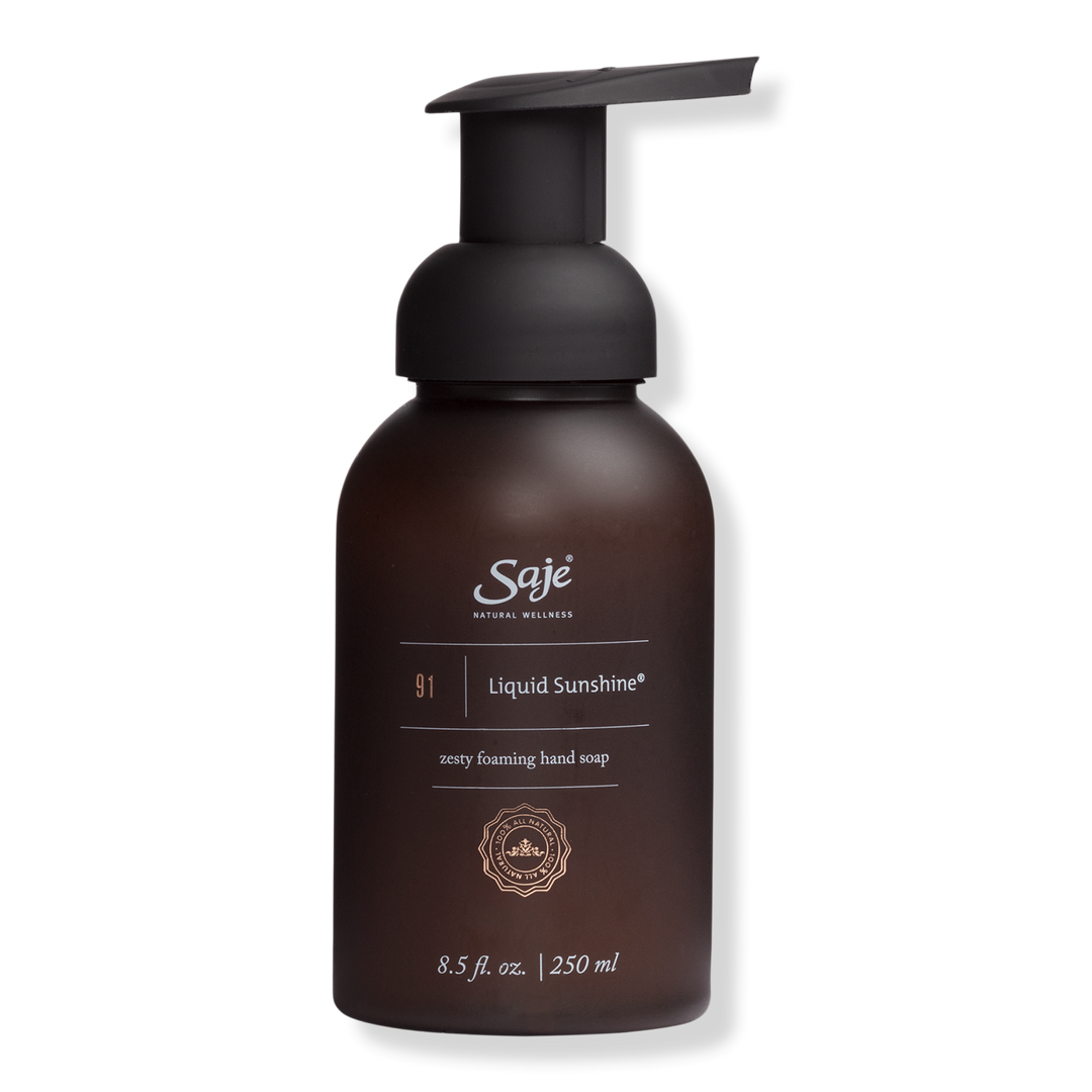 Saje Natural Wellness's Liquid Sunshine Zesty Foaming Hand Soap is blended with 100% natural citrus and Coconut oils to cleanse, nourish and refresh your hands.