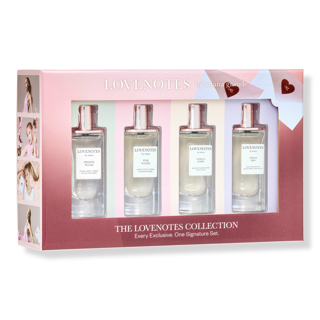 Every Exclusive. Each scent in this gift set is a love letter from Ariana to the world, available for the first time as a complete collection. Discover the globally inspired fragrances and enjoy a 20% off voucher toward your favorite full-size scent from the LOVENOTES collection.