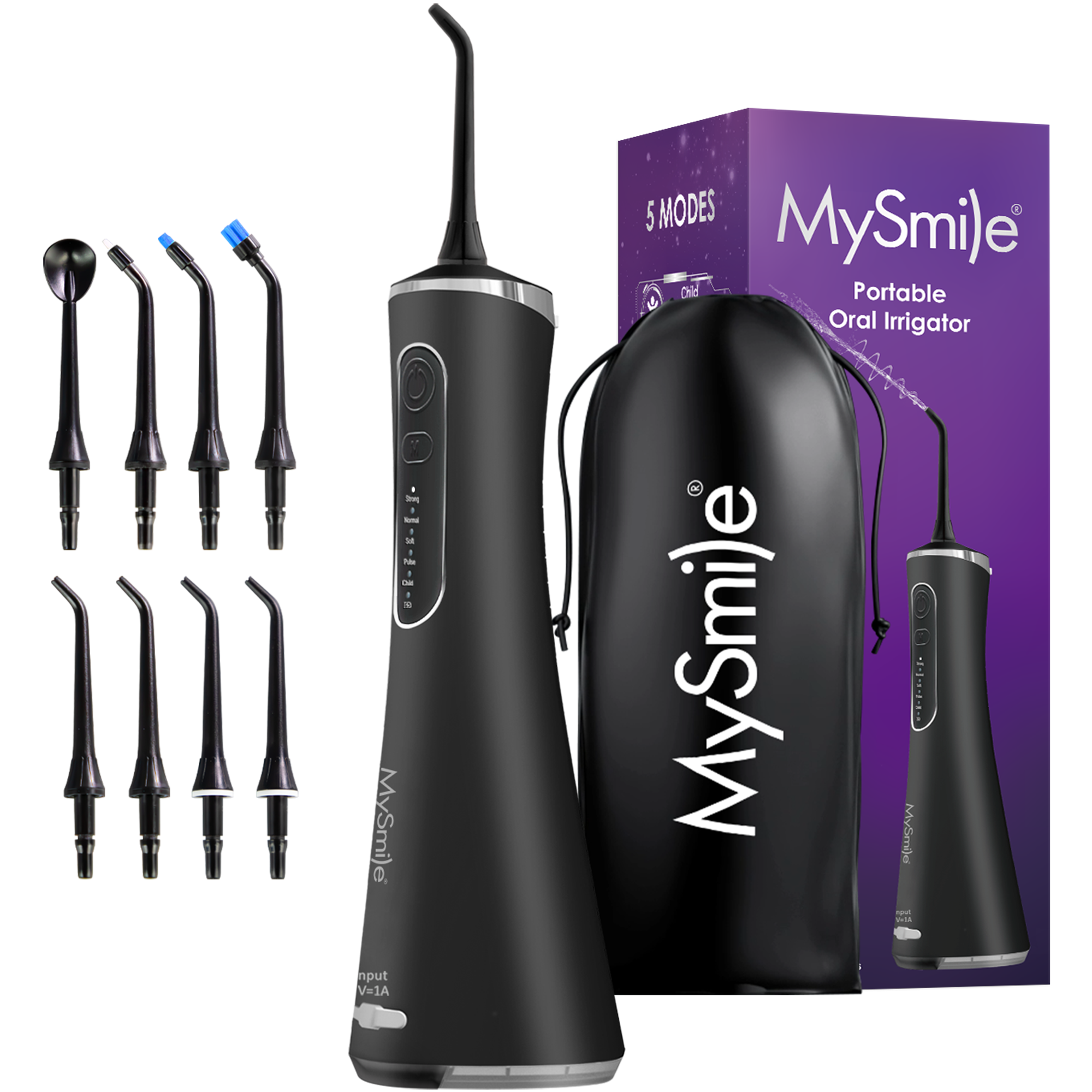 - ADVANCED CLEANING TECHNOLOGY: MySmile LP211 water flosser features 5 pressure modes and superior pump technology. With 2000-2800 pulses per minute and 40-150 PSI, it effectively removes plaque and food residue for thorough cleaning.