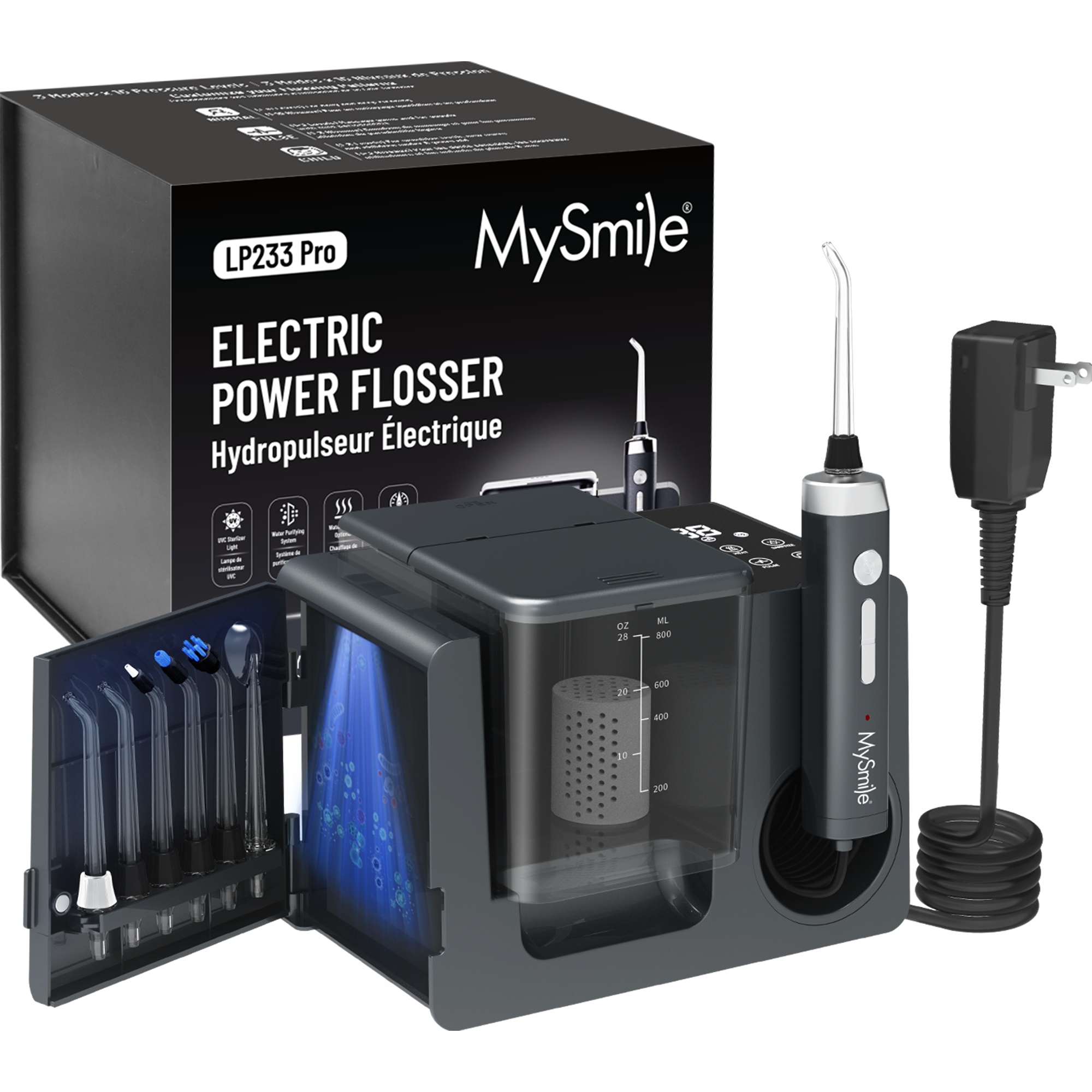 Transform your smile with the MySmile LP233 Pro! Up to 1650 pulses/min and 50–180 PSI power away 99.99% of plaque. With smart modes, digital display, 27oz tank, UVC light, heating, and on-handle controls, it’s like a spa day for your mouth every day.