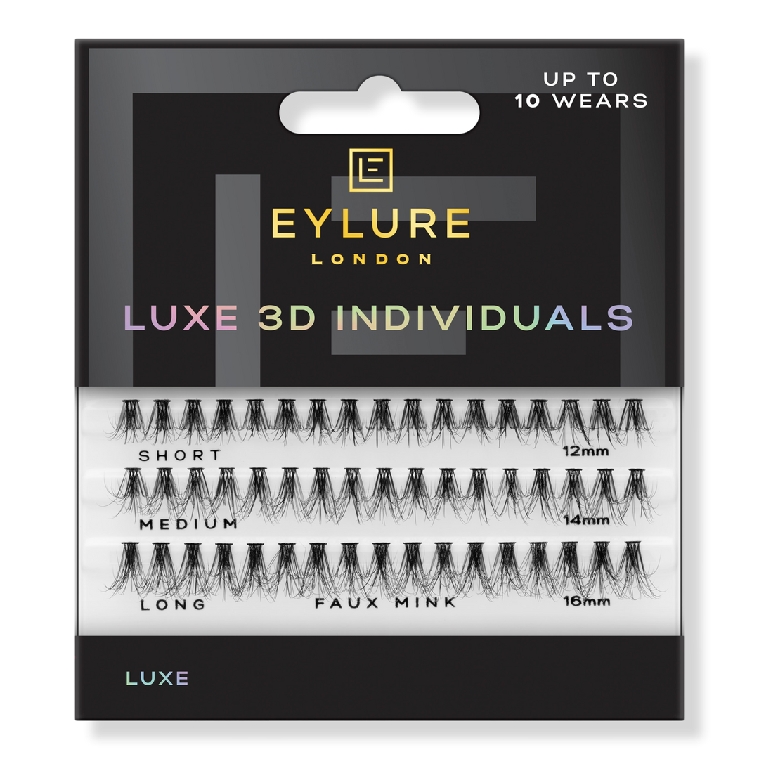 Create a voluminous look with the luxurious, fluffy and full Eylure Luxe 3D Individual Faux Mink Lash Flares. Includes short, medium, and long sizes for easy customization. Handmade and reusable for use on multiple nights.