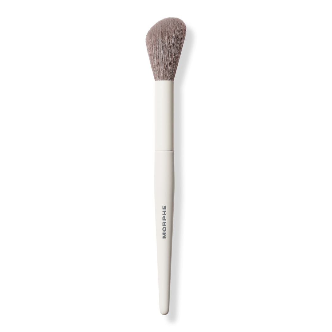 The fluffy, flexible tip of Morphe's M201 Angled Powder Blush Brush helps perfects a pinch of cheek color. Use it as well to gently tap powder blush over cream or liquid blush. It will set the application, without disturbing the product underneath.