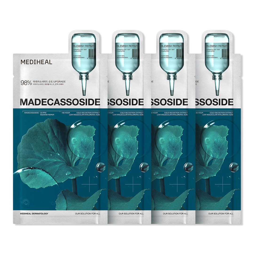 Mediheal Madecassoside Essential Mask 4 Pack is infused with advanced madecassoside to help reinforce the skin barrier and support recovery for blemish-prone skin.