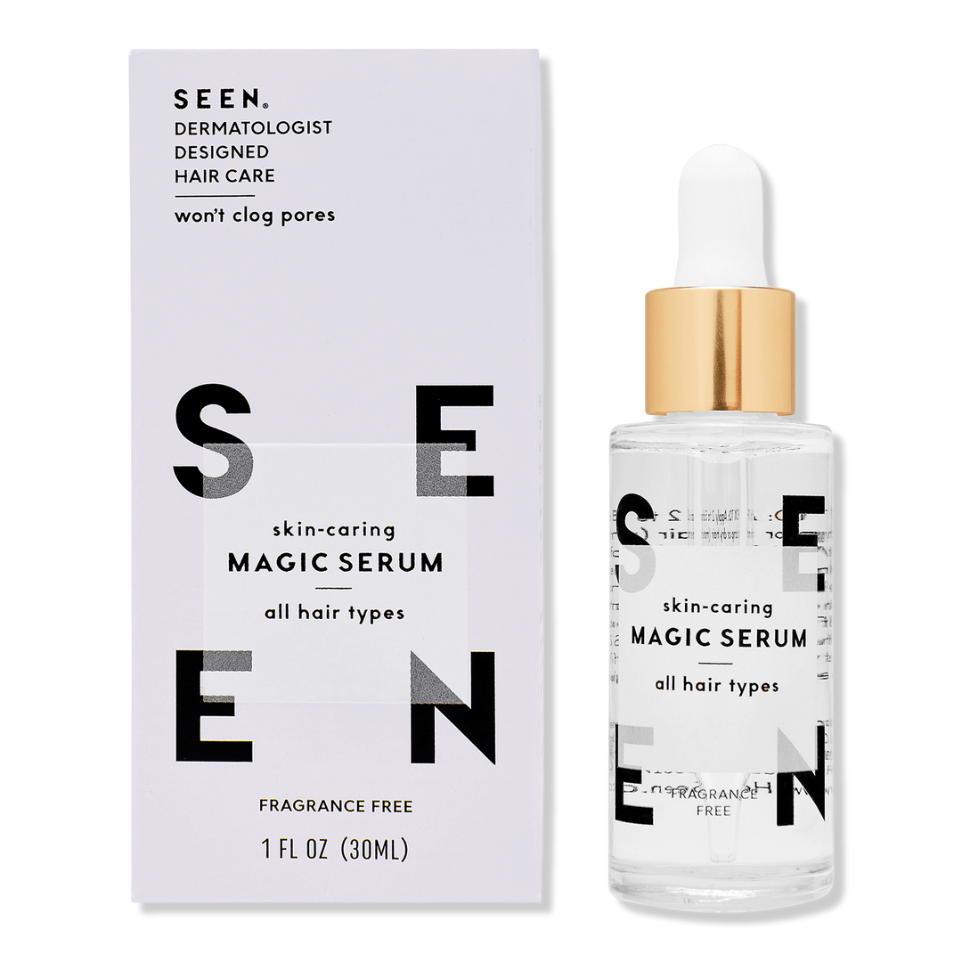 SEEN Magic Serum works to visibly transform your hair into smoother, shinier, healthier-looking hair in just seconds. It reduces frizz, adds shine, nourishes, strengthens and protects hair from heat styling and breakage.