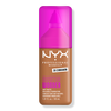 NYX Professional Makeup Make 'Em Wonder Foundation is a soft matte, buildable liquid foundation with up to 24-hour wear. Infused with vitamin C and Hyaluronic Acid. Formula is waterproof, transfer-resistant, and sweat-resistant.