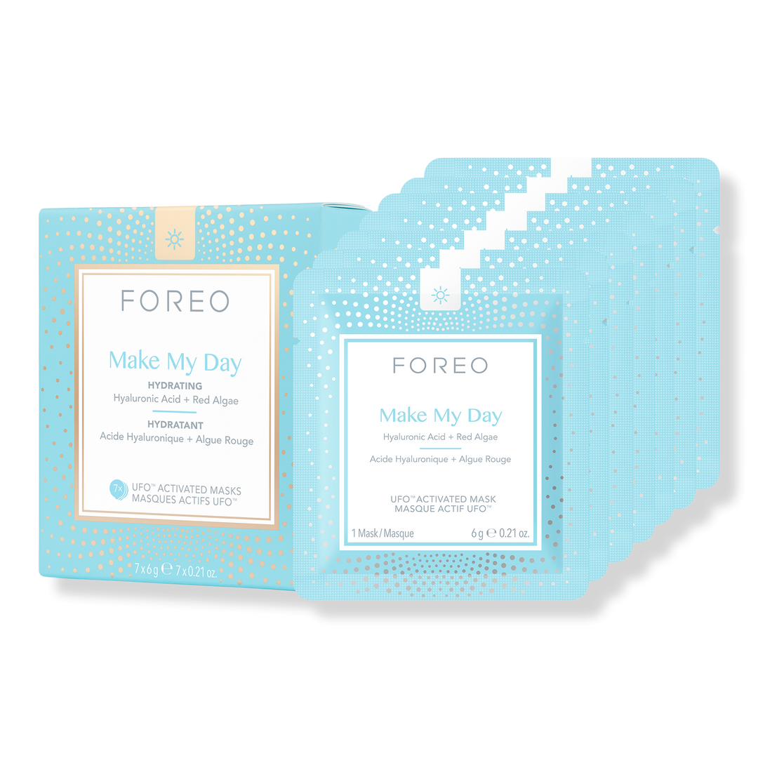 Turn a 20 minute treatment into a 90 second treat with Foreo's Make My Day Hydrating UFO Activated Sheet Masks. Each concentrated formula pairs with a unique UFO routine for an invigorating and indulgent facial every day-twice a day.