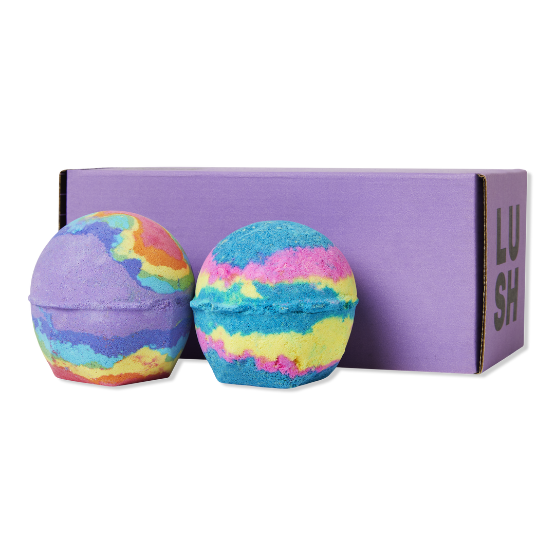 Lush's Make Waves Bath Bomb Duo contains two bath bombs that create swirls of fizzing color and fragrance for an out-of-this-world bathing experience.
