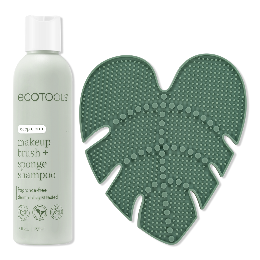 The EcoTools Makeup Brush + Sponge Shampoo & Cleansing Pad Bundle is your perfect cleansing duo for deep cleaning your makeup brushes, quick and easy.