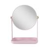 Makeup, hairstyling & beauty mirror for women. 5-times and 1-time magnifications. Accessory tray with phone holder stand in base. 10.4-inch by 7.7-inch by 5.6-inches. 6.7-inch dia. glass face mirrors. 360-degree rotating magnified face mirror without lights. Modern matte touch finish.