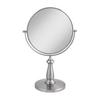 Makeup mirror head swivels 360-degree for easy viewing. Dual-sided 8-times and 1-time magnification. Optical quality glass. Non-slip base