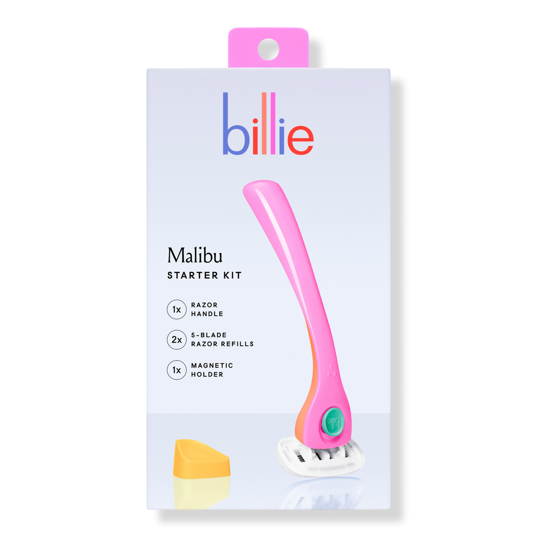 Meet billie's Malibu Razor Starter Kit, the award-winning razor with 20,000+ 5star reviews. With 5 sharp blades encased in soothing aloe shave soap, it's designed to float over your skin for an ultra-smooth shave.