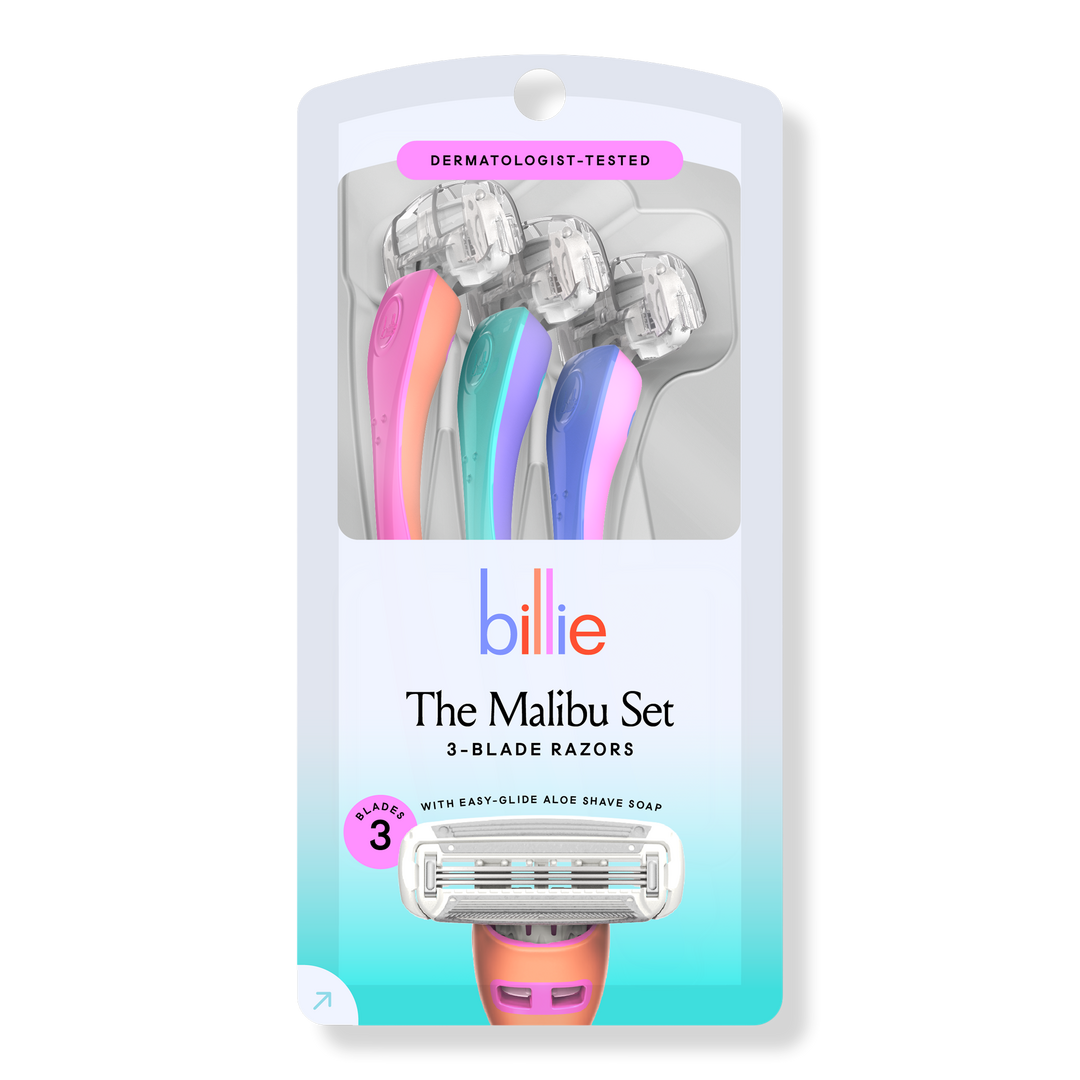 Meet the Billie Malibu Set Disposable Razors, a trio of 3-blade razors lovingly designed to deliver a great shave with minimal irritation.