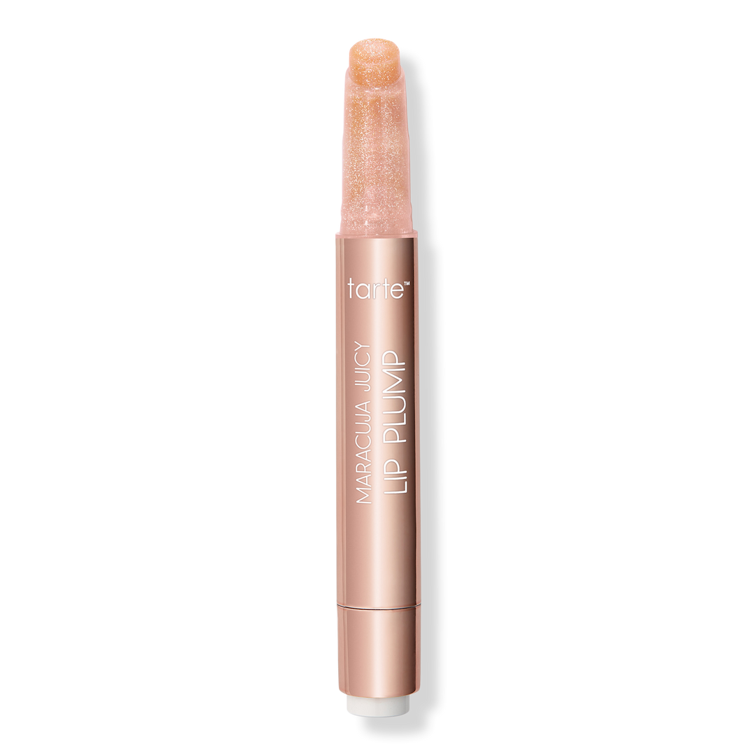 tarte's Maracuja Juicy Shimmer Glass Lip Plump is all-in-1 plumping balm, gloss, color & hydrating treatment with buildable coverage & a shimmer plump finish!