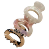 - Elevate your hair ensemble with our Petite Marbled Hair Clips, the perfect blend of elegance and functionality. These compact clips, measuring 2 inches in length and 1 inch in height, are designed to offer a secure grip while adding just the right amount of flair to your look. Their glossy finish and unique marbled design make them a standout accessory, ideal for adding a sophisticated touch to any hairstyle. Whether you're aiming for a simple everyday look or a more polished style, these clips are your go-to for a chic, tight hold that's about half the size of standard claw clips, ensuring your hair stays in place with style and grace.