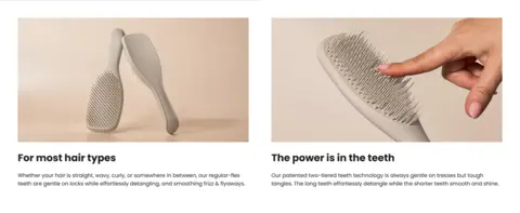 - Patented two-tiered teeth for healthy-looking hair; the longer teeth glide through knots, while the shorter teeth smooth frizz and fly-aways