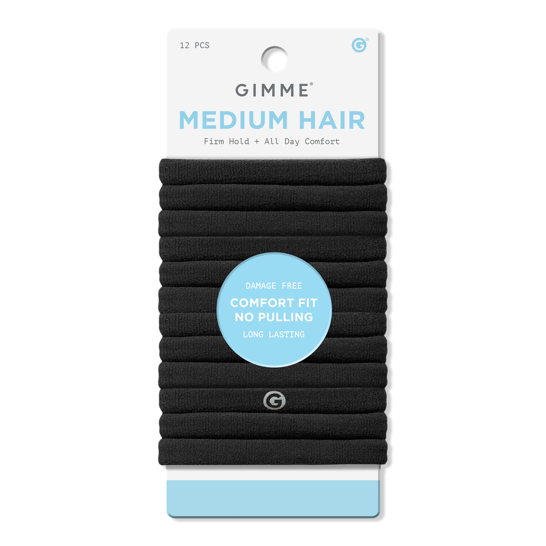 Discover Gimme Beauty hair bands, perfect for medium hair! Strong yet gentle grip, no snagging, breaking, dents, or creases. Effortless styling awaits!