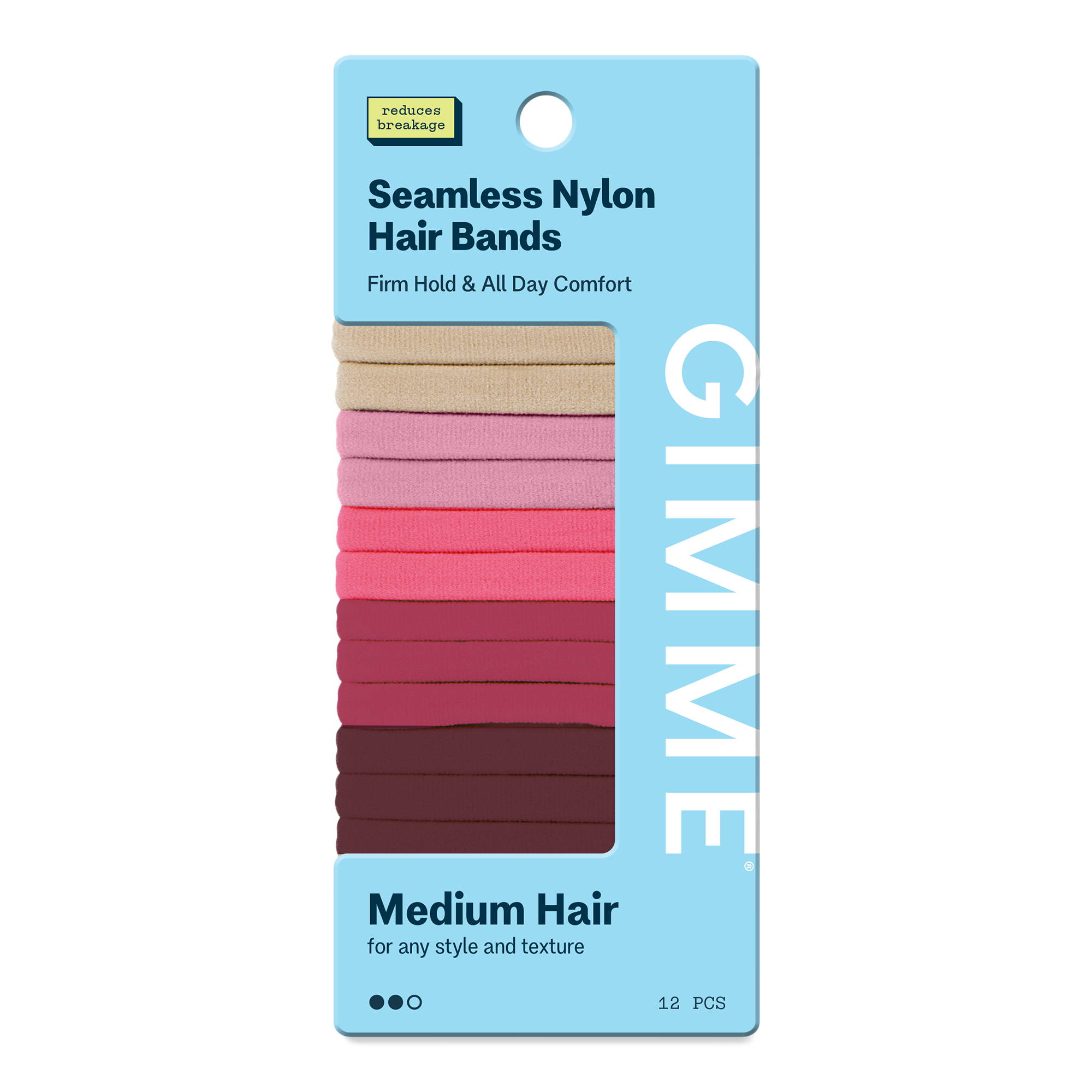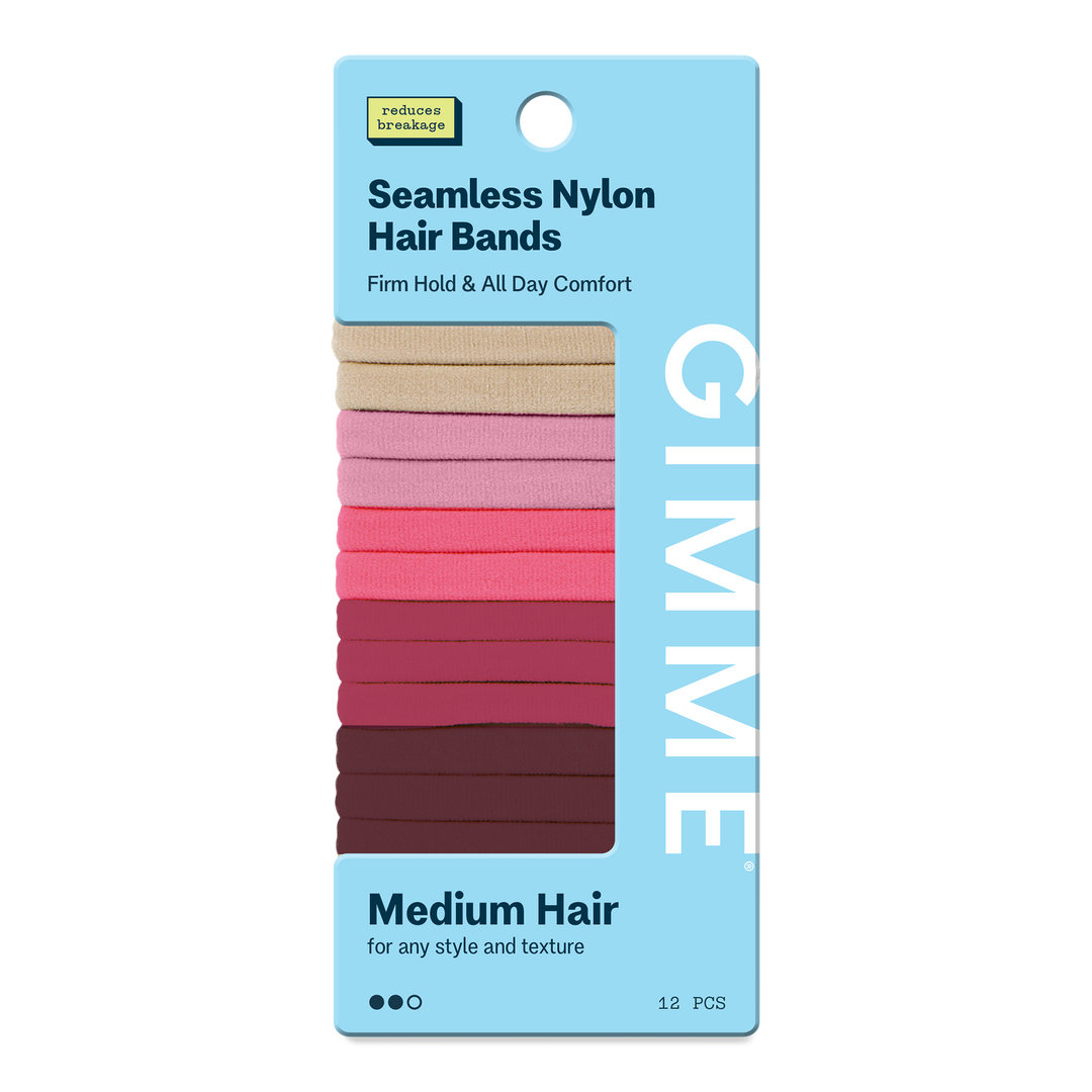 Discover Gimme Beauty hair bands, perfect for medium hair! Strong yet gentle grip, no snagging, breaking, dents, or creases. Effortless styling awaits!