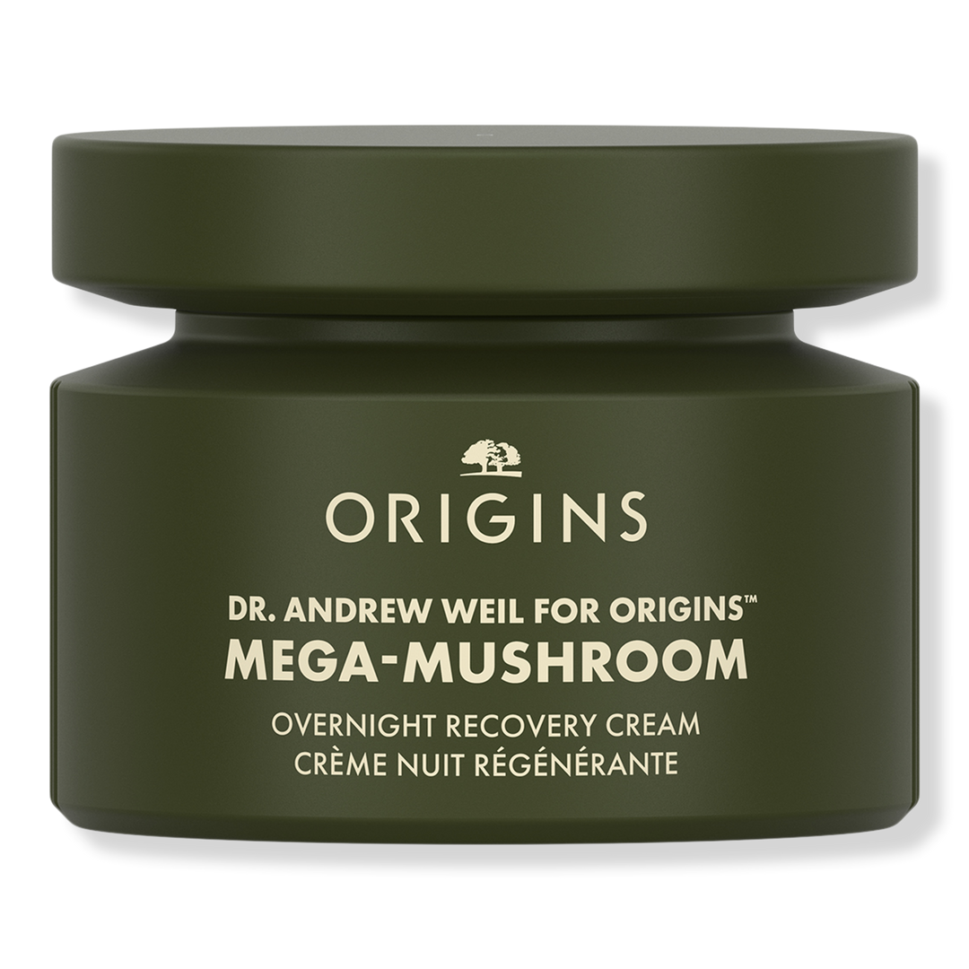 The Origins Mega Mushroom Overnight Recovery Cream Moisturizer blankets skin in a lush layer of moisture to deeply repair and restore, so you awake to radiant, rejuvenated skin come morning.