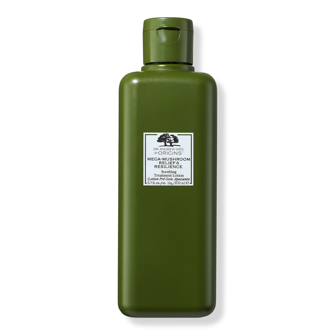 The Dr. Andrew Weil for Origins Mega-Mushroom Relief & Resilience Soothing Treatment Lotion is a mushroom-infused lightweight, watery lotion that refines like a toner, preps for skincare and makeup, and also helps hydrate and reduce the look of redness.