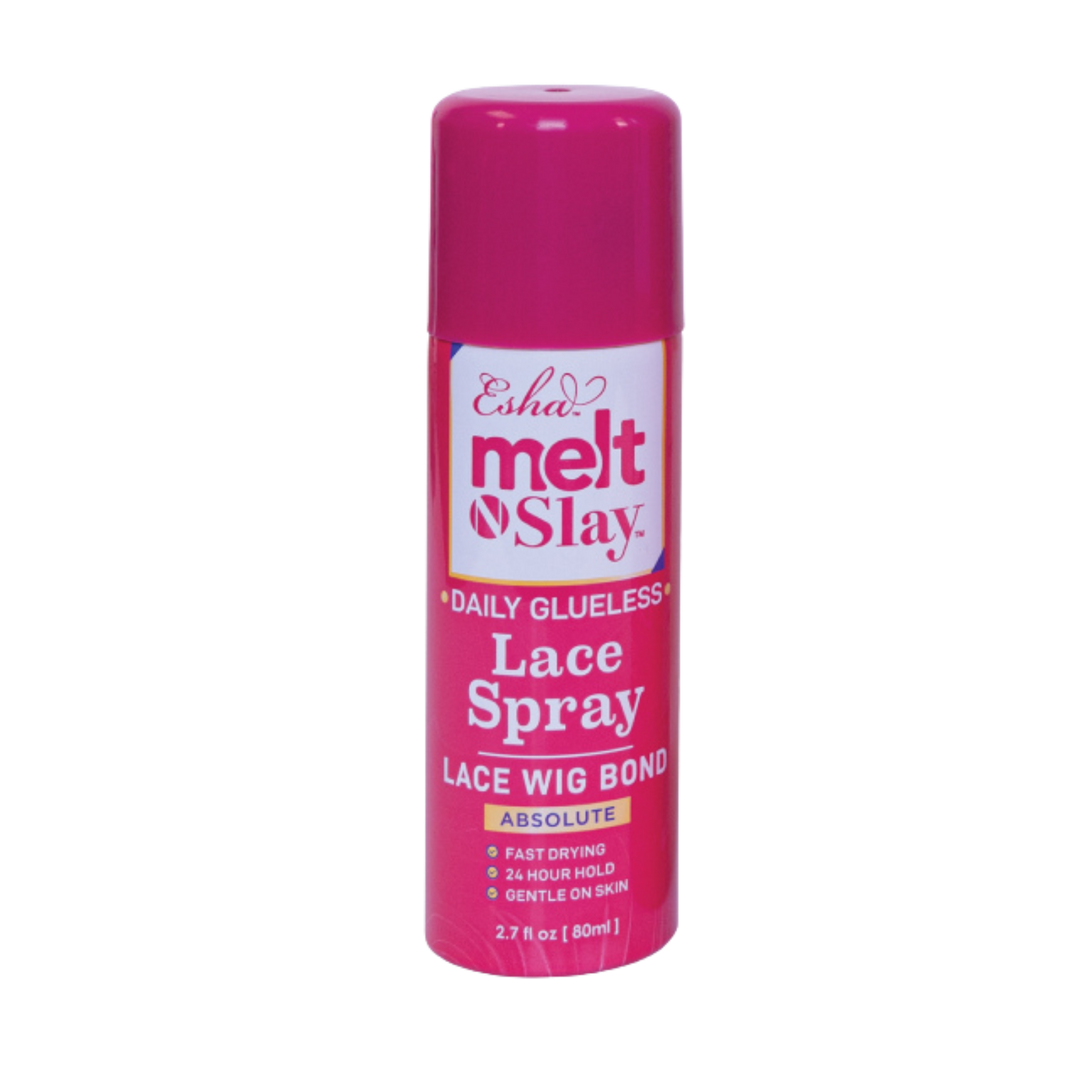 Glueless lace spray designed to help secure lace for a natural-looking finish.